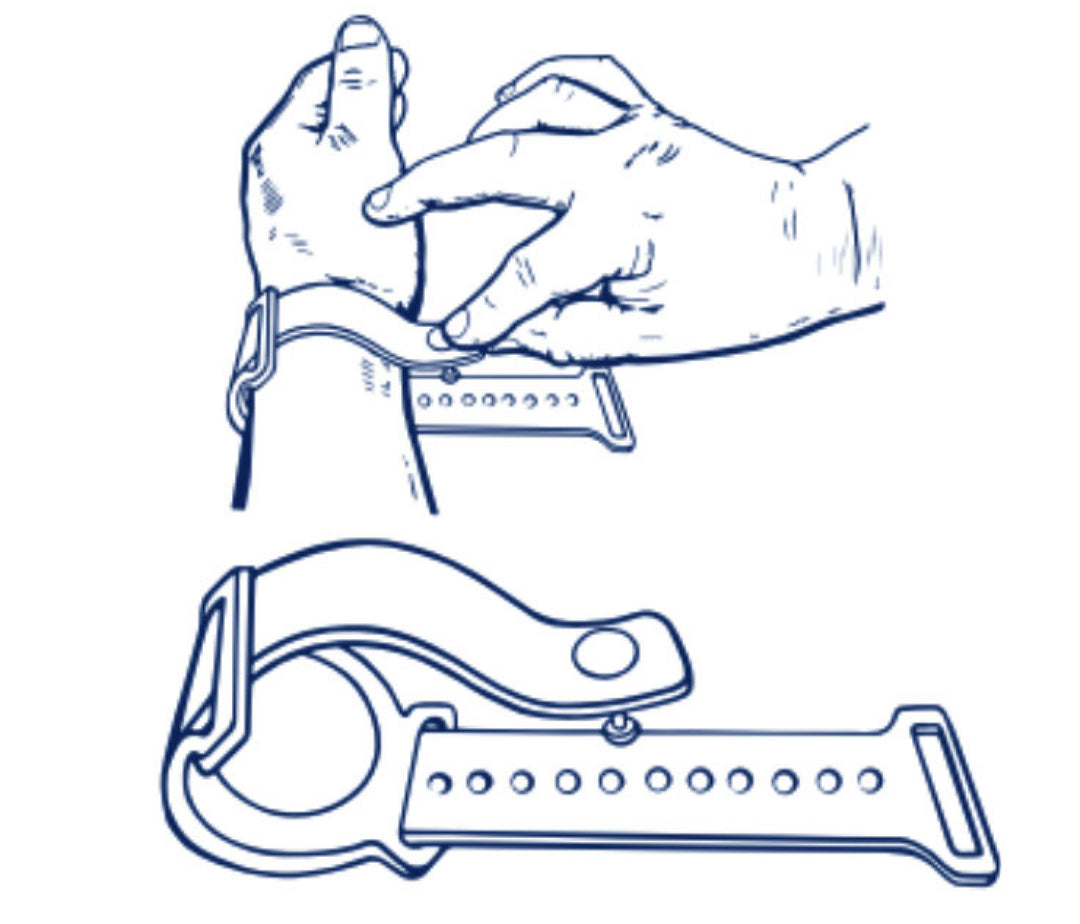 Wrap the wristband, with the selected metal disc, around your wrist. Be sure that the Sensiband logo faces outwards and the metal disc fits snug against your skin.